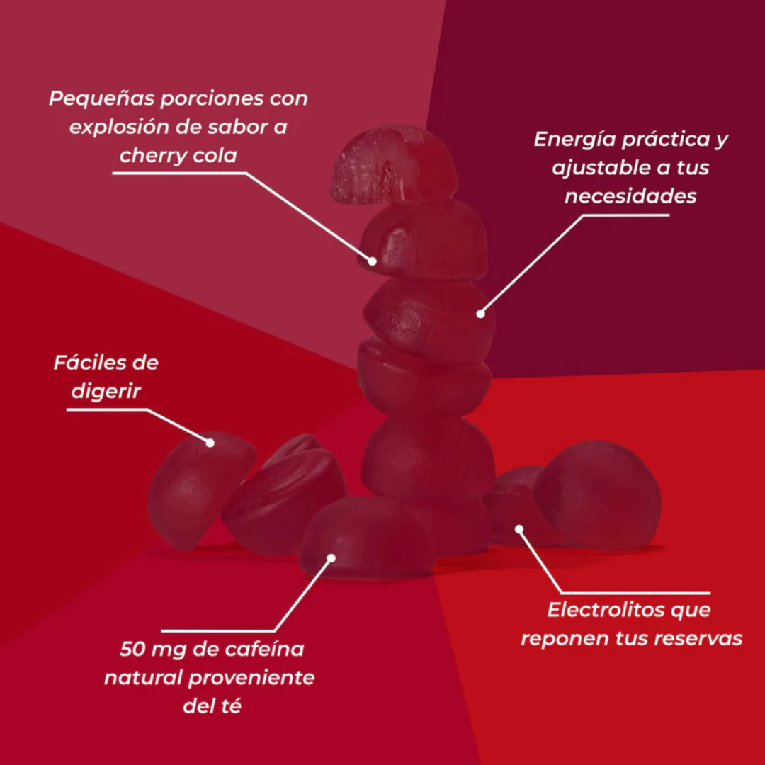 Su formato masticable y portátil los hace fáciles de consumir en movimiento, aportando carbohidratos de rápida disponibilidad junto con vitamina C que contribuye a cubrir el 70% de la ingesta diaria recomendada. Con un sabor único a Cherry Cola refrescante, son una opción funcional y sabrosa dentro de la nutrición deportiva.