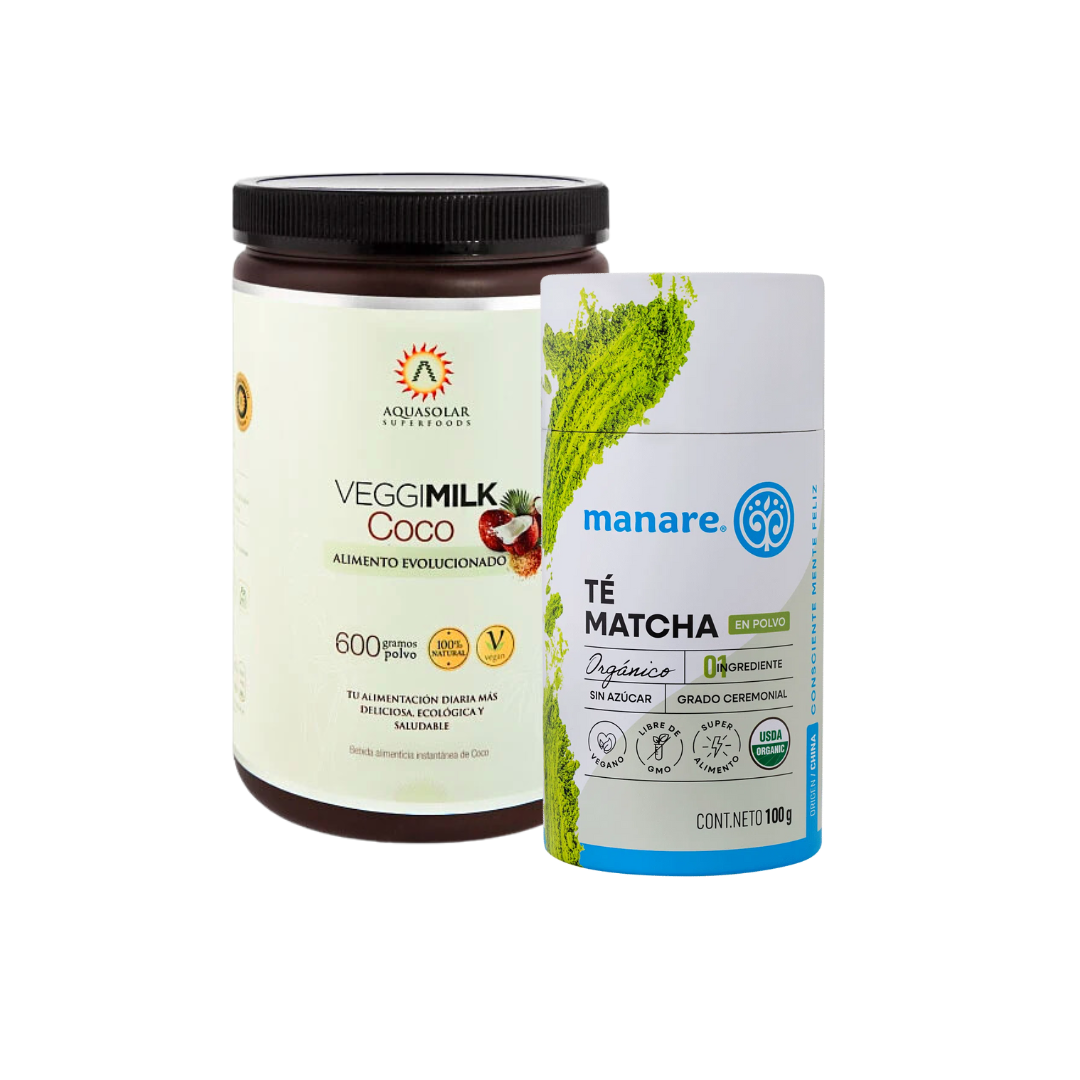 Veggi Milk Coco 600g Aquasolar + Té Matcha Orgánico Manare 100g - Pack